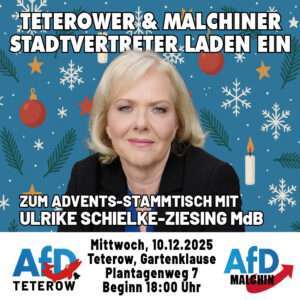 Den Auftakt machte ein gemütlicher Adventsempfang in meinem Bürgerbüro für die Teterower AfD-Stadtfraktion – ein kleines Dankeschön für die jahrelange gute Zusammenarbeit und das starke Engagement vor Ort.